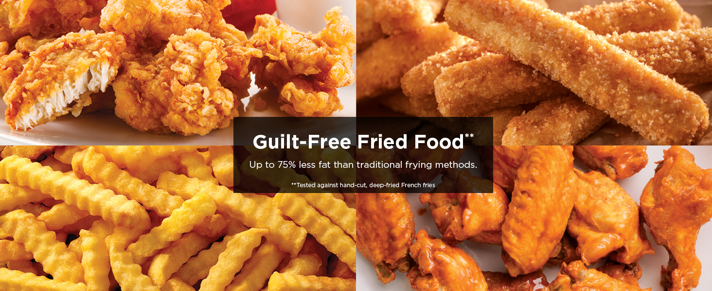 • LESS FAT: Up to 75% less fat than traditional air frying methods. Tested against hand-cut, deep-fried French fries.