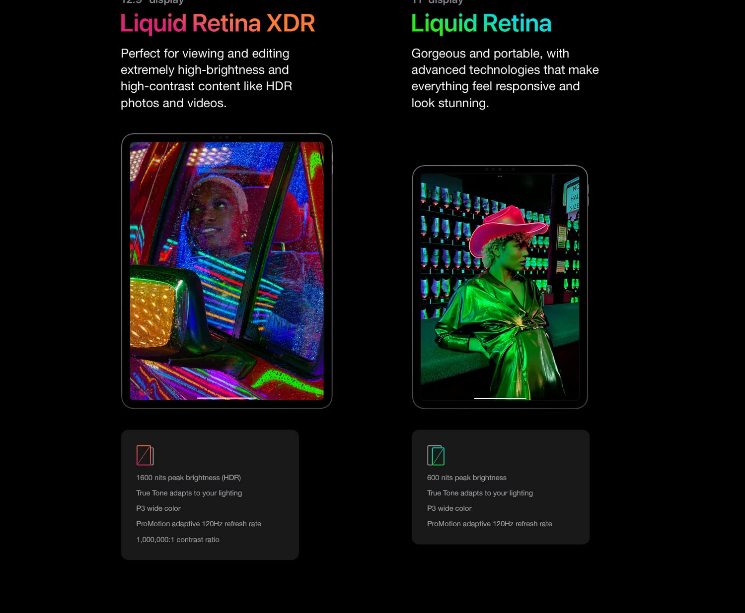 • Brilliant 12.9-inch Liquid Retina XDR display with ProMotion, True Tone, and P3 wide color