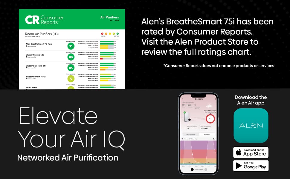 【Appliances】Alen BreatheSmart 75i Large Room Air Purifier, Medical Grade Filtration H13 True HEPA