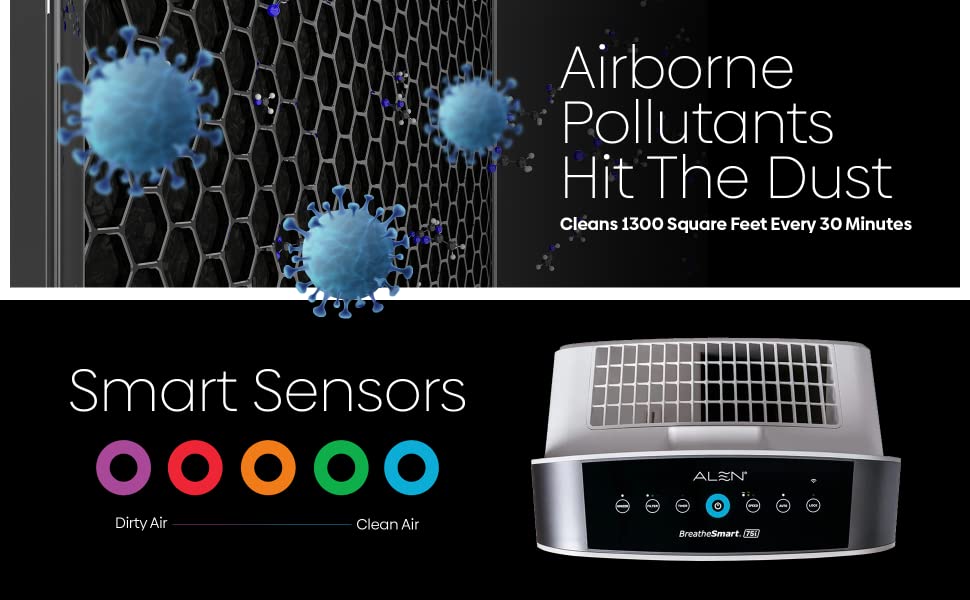 - SMART SENSOR: The BreatheSmart 75i HEPA air purifier has a laser smart sensor that detects airborne particles and self-adjusts to better filter air. Use the AUTO mode to activate this feature and to automatically speed up or slow down the fan to filter the air.