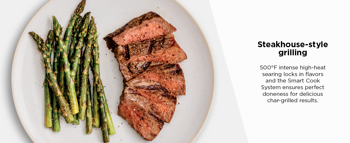 Meet Ninja's most powerful grill*, the Ninja Foodi Smart XL Pro Grill & Griddle. With a 500F independently powered grill grate, get direct, edge-to-edge high heat for perfect char-grilled results. It even unlocks BBQ griddling to cook foods other grills can't. Grill, griddle, air fry, and so much more all in one family-sized appliance. *Based on grill grate's direct heating element.